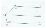 \(\eqalign{  &  \Rightarrow \widehat {xOC} = {180^0} – {105^0} = {75^0}  \cr  & \widehat {A0x} + \widehat {xOC} = {120^0}(vi\widehat {AOC} = {120^0})  \cr  &  \Rightarrow \widehat {A0x} = {120^0} – {75^0} = {45^0}  \cr  & \widehat {BAO} + \widehat {A0x} = {135^0} + {45^0} = {180^0} \cr} \)