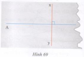 Giải bài tập Hình 69 minh họa một tờ giấy bị rách mất một phần, trên đó có hình vẽ đường trung trực xy của đoạn thẳng AB và điểm B nằm bên phần bị rách. Hãy vẽ lại hình 69 và dựng lại điểm bằng hai cách.