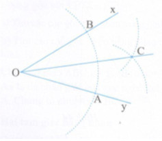Giải bài tập Cho góc xOy. Vẽ cung tròn tâm O bán kính 3 cm, cung này cắt Ox ở B, cắt Oy ở A. Vẽ các cung tròn tâm B và tâm A có cùng bán kính 2 cm, hai cung tròn này cắt nhau tại C. Nối O với C.