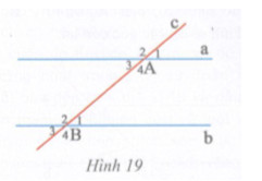 Cho hình 19, biết \(\widehat {{A_3}} = {45^o},\,\,\widehat {{B_1}} = {45^o}.\) Tính số đo các góc còn lại.