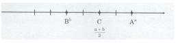 b) \(\eqalign{  & A(a),B(b),C\left( {{{a + b} \over 2}} \right)  \cr  & AC = \left| {a – {{a + b} \over 2}} \right| = \left| {{{a – b} \over 2}} \right|,BC = \left| {b – {{a + b} \over 2}} \right| = \left| {{{b – a} \over 2}} \right| \cr} \)