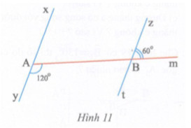 Ta có: \(\widehat {yAm} = \widehat {tBm}( = {120^0})\)  mà \(\widehat {yAm}\)  và \(\widehat {tBm}\)  là hai góc đồng vị.