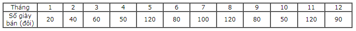 Một cửa hàng bán giày ghi lại số đôi giày bán mỗi tháng trong bảng sau: