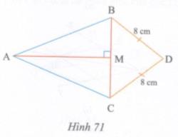 Quan sát hình 71, biết AM là đường trung trực của đoạn thẳng BC, độ dài các đoạn thẳng DB = DC = 8 cm. Chứng minh ba điểm A, M, D thẳng hàng.