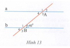 b) Ta có: \(\widehat {{A_4}} = \widehat {{B_2}} = {40^0}\)  (hai góc so le trong) và a // b.