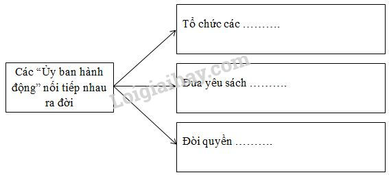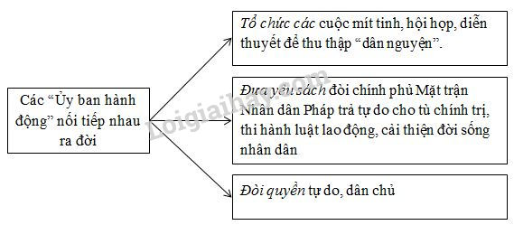 a) Hưởng ứng chủ trương của Đảng Cộng sản Đông Dương, phong trào đấu tranh của nhân dân ta đã diễn ra như thế nào? Hãy hoàn thiện sơ đồ dưới đây để trả lời câu hỏi:
