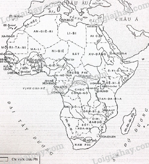Giải bài tập 5 trang 23 VBT lịch sử 9: Bằng những kí hiệu khác nhau, hãy xác định trên lược đồ Châu Phi…