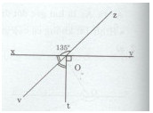 Nên \(\widehat {xOz} + \widehat {zOy} = {180^0} \Rightarrow \widehat {zOy} = {180^0} – {135^0} = {45^0}\)