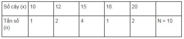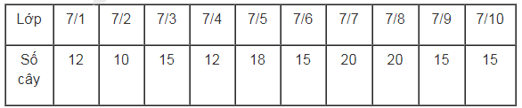 Hưởng ứng phong trào “Tết trồng cây”, số cây trồng của khối 7 được ghi lại trong bảng sau:
