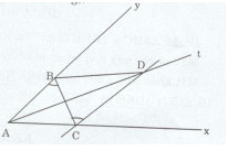 Cho góc xAy nhọn có At là tia phân giác. Trên tia At ta lấy điểm D, đường thẳng song song với Ay kẻ từ D cắt Ax tại C.
