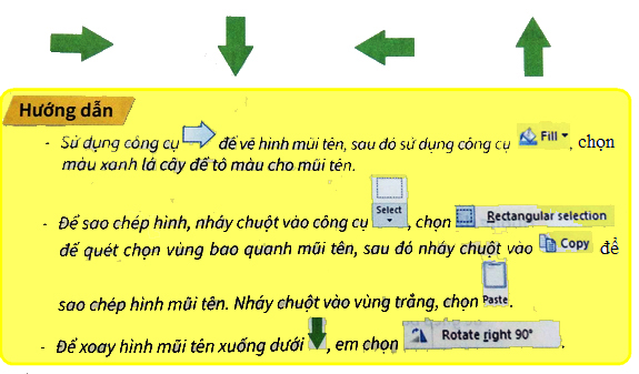 Giải phần bài tập thực hành trang 31 sách bài tập hướng dẫn học tin học 4. Vẽ bốn hình mũi tên xoay theo các chiều khác nhau như mẫu…