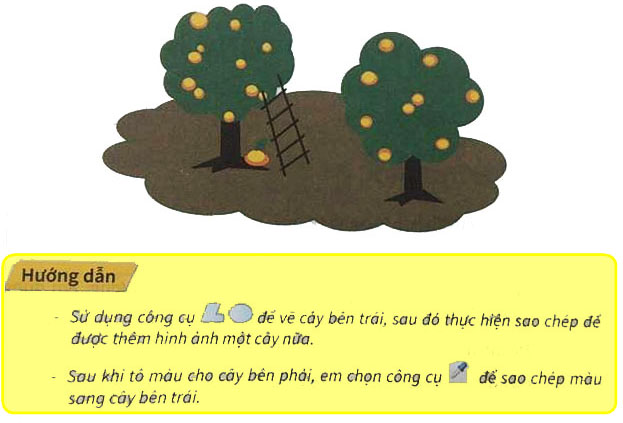 Giải phần bài tập thực hành trang 37 sách bài tập Hướng dẫn học tin học 4. Em hãy thực hiện vẽ bức tranh như hình mẫu…