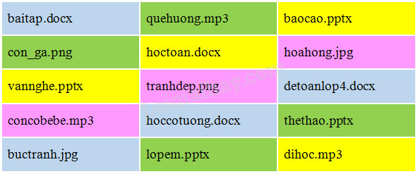 – Các tệp có phần mở rộng là .jpg là các tệp có nội dung tranh ảnh.