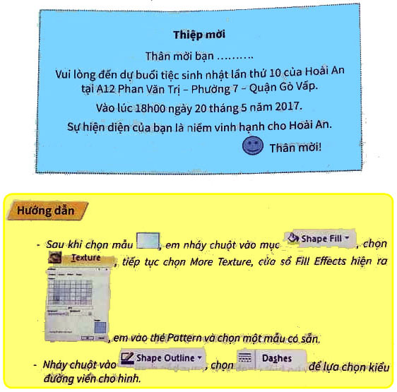 Em hãy thiết kế thiệp mời dựa theo mẫu sau :