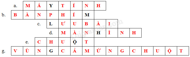 Giải phần bài tập vận dụng, mở rộng trang 8 sách bài tập hướng dẫn học tin học 4. Giải ô chữ a) Vật có các bộ phận : màn hình, bàn phím, chuột, … b) Bộ phận dùng để đưa tín hiệu vào máy tính…