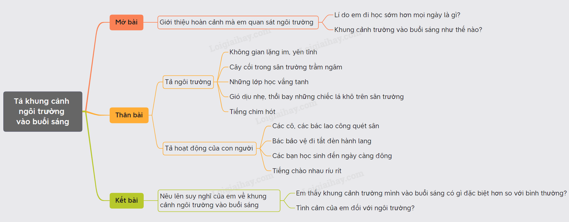 Kết bài: Nêu lên suy nghĩ của em về khung cảnh ngôi trường vào buổi sáng