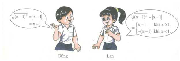 Vậy \(\sqrt {{{\left( {x – 1} \right)}^2}}  = \left| {x – 1} \right| \)\(\;= \left\{ \begin{array}{l}x – 1\;\;\;khi\;\;x \ge 1\\ – \left( {1 – x} \right)\;\;khi\;\;x < 1\end{array} \right..\)