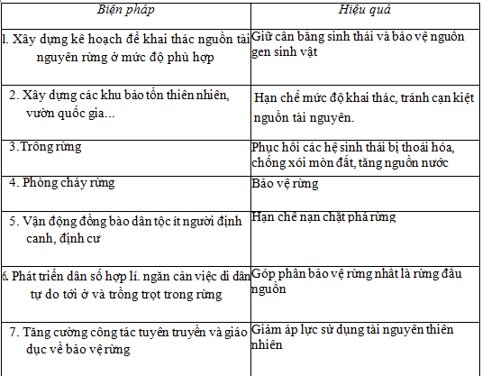 Bảng 60.2. Biện pháp bảo vệ các hệ sinh thái rừng