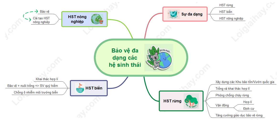 Sơ đồ tư duy Bảo vệ đa dạng các hệ sinh thái: