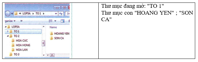 Hình dưới đây là trạng thái ngăn trái trong cửa sổ Computer. Em hãy quan sát rồi viết vào chỗ trống (….) tên thư mục đang mở, tên thư mục có chứa thư mục con.