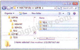 – Nhấn giữ phím Shift đồng thời nháy chuột lên thư mục TO C sẽ thấy cả ba thư mục được chọn bị đổi màu như hình bên.