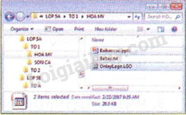– Trường hợp 2: Sao chép 2 tệp là Baibaocao.pptx và OntapLOgo.LGO trong thư mục HOA MY sang thư mục SON CA.