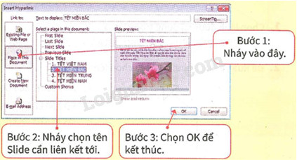 – Tên liên kết mặc định sẽ lấy tên tiêu đề của nội dung trong Slide.