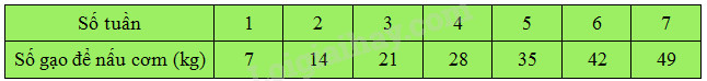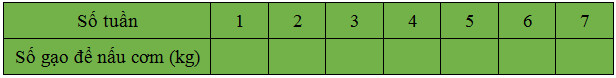 Giả sử số gạo dùng để nấu cơm trong một tuần của gia đình em là 7kg. Khi đó ta có bảng như sau :