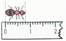 Chiều dài của con kiến là \(\dfrac{8}{{10}}cm\), ta viết thành \(0,8cm.\)
