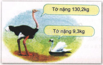 Một con đà điểu cân nặng 130,2kg, một con thiên nga cân nặng 9,3kg. Hỏi con đà điểu cân nặng gấp mấy lần con thiên nga ?