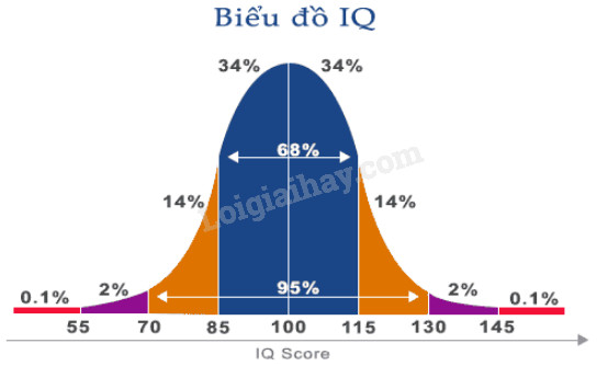 Dựa vào thông tin trên có thể hiểu cứ 100 người thì có 16 người có chỉ số IQ thuộc loại thấp, 68 người có chỉ số IQ thuộc loại bình thường; 14 người có chỉ số IQ thuộc loại thông minh; 2 người có chỉ số IQ thuộc loại rất thông minh và cứ trong 1000 người sẽ có 1 người có chỉ số IQ thiên tài hoặc cận thiên tài.