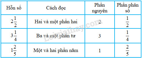 Khi đọc (hoặc viết) hỗn số ta đọc (hoặc viết) phần nguyên rồi đọc (hoặc viết) phần phân số.