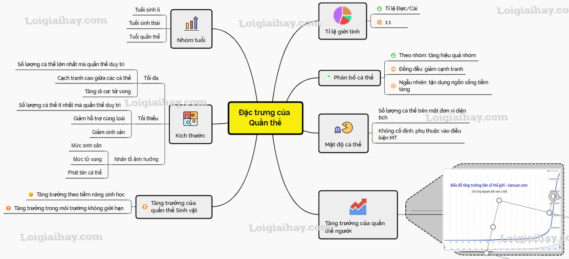 Sơ đồ tư duy Các đặc trưng cơ bản của quần thể sinh vật: