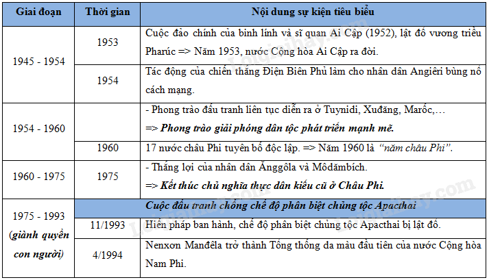 – Tình hình các nước châu Phi sau Chiến tranh thế giới thứ hai (hay là hoàn cảnh lịch sử của phong trào đấu tranh giải phóng dân tộc ở châu Phi).