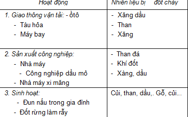 1. Ô nhiễm do các chất khí thải ra từ hoạt động công nghiệp và sinh hoạt