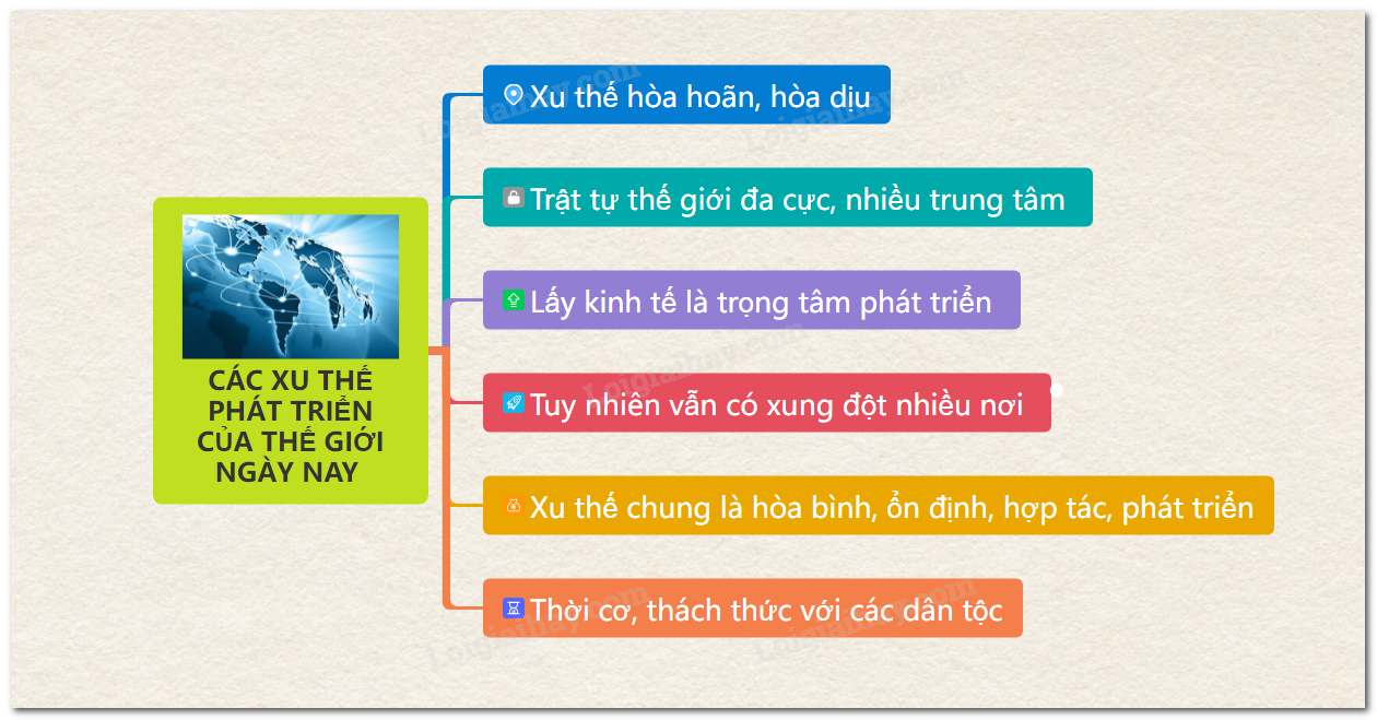 Sơ đồ tư duy Các xu thế phát triển của thế giới ngày nay