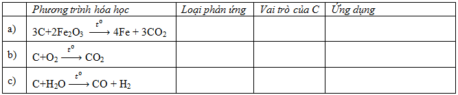 Giải câu 1, 2, 3, 4 phần bài tập bổ sung – Trang 81, 82 VBT hoá 9. Cacbon phản ứng được với tất cả các chất trong dãy sau:….
