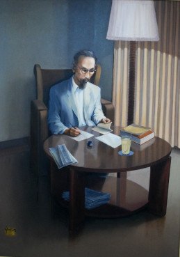 – Người ngồi viết là Bác Hồ, Người đang viết bản “Tuyên ngôn Độc lập”.