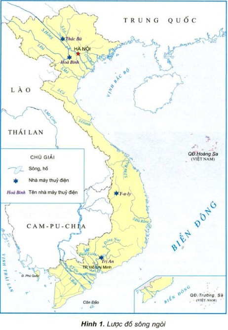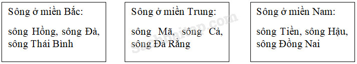 Quan sát hình 1, trang 75 trong SGK, hãy viết tên một số con sông vào các ô trống cho phù hợp.