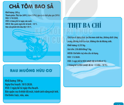 Đọc nhãn của một số thực phẩm dưới đây và cho biết một số thông tin quan trọng: tên thực phẩm, thành phần, cách sử dụng, cách bảo quản, ngày sản xuất, hạn sử dụng, khối lượng, …