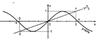 Vậy các giao điểm của đường thẳng \(y = {x \over 3}\) với đồ thị của hàm số \(y = \sin x\) phải thuộc đoạn \(EF\).