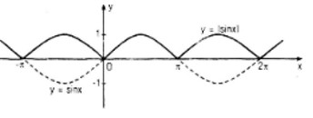 – Đồ thị \(y = |\sin x|\) là đường liền nét trong hình dưới đây :