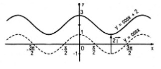 Đồ thị của hàm số \(y = \cos x + 2\) có được do tịnh tiến đồ thị của hàm số \(y = \cos x\) lên trên một đoạn có độ dài bằng \(2\)