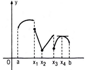 Hình 5.5 là đồ thị của hàm số y = f(x) xác định trên khoảng (a ; b). Dựa vào hình vẽ, hãy cho biết tại mỗi điểm x1, x2, x3 và x4 :