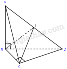 +) Tam giác ABD vuông tại B có BI là đường trung tuyến ứng với cạnh huyền AD nên: \[IA = IB = ID = \frac{{AD}}{2}\left( 2 \right)\]