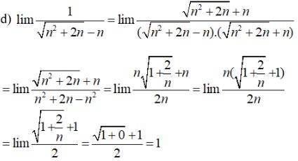 \(\lim {1 \over {\sqrt {{n^2} + 2n}  – n}}\)