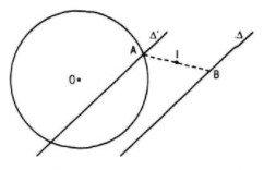 Mặt khác A lại nằm trên \((O ; R)\) nên A phải là giao điểm của \(△’\) và \((O ; R)\)