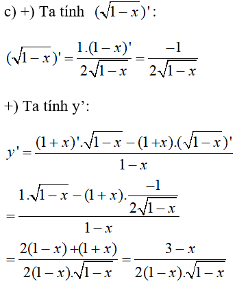 \(y’  = {{3 – x} \over {2\sqrt {{{\left( {1 – x} \right)}^3}} }}\)