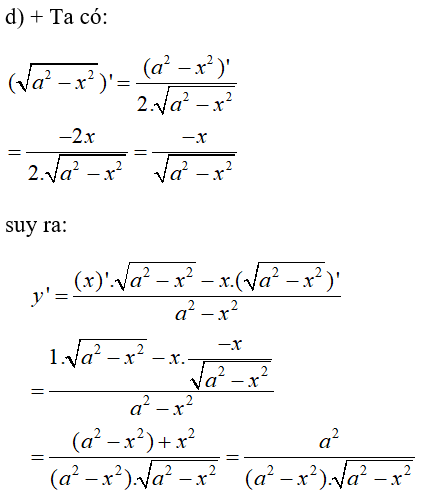 \(y = {x \over {\sqrt {{a^2} – {x^2}} }}\) (a là hằng số)