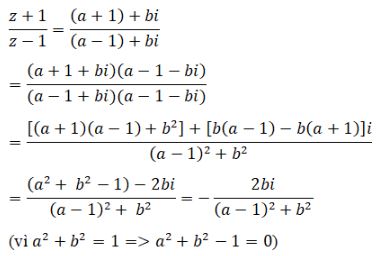Nên (z+1)/(z-1) là số ảo thì a2+b2-1=0 <=> a2+b2=1 <=> |z| = 1 (đpcm)